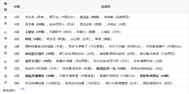 在男单A组首轮中,李诗沣用时58分钟,连丢两局,以0-2(14-21/19-21)不敌头号种子、丹麦选手安东森,首战告负。在男单B组首轮中,2号种子石宇奇耗时1小时04分钟,打满三局,以2-1(21-16/17-21/21-8)力克印尼选手乔纳坦,收获开门红。